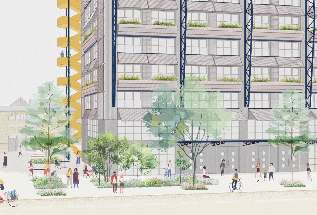 The impact of the current poly-crisis on the notion of European identity is examined and addressed architecturally in the context of the Baselstrasse neighbourhood in Luzern, which is considered the backstage of the city, a place for the outcast. Public places, infrastructure, and access to the riverfront are almost non-existent. In the first phase, the Parkhaus remains a parking garage, while only the structural elements of the uppermost floor are dismantled and used to build the river bath. In a second phase, again just the top floor elements are used to build the community building. In the last phase, like tearing up a carcass, half of the building remains standing and with the elements of the other half, an L-shaped housing volume is developed. The three buildings and the connecting bridge are not necessarily to be read as one. Nevertheless, their volumes become part of an urban composition which has characteristics of a unity.