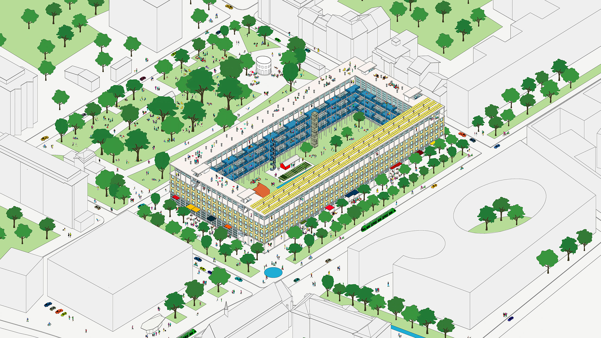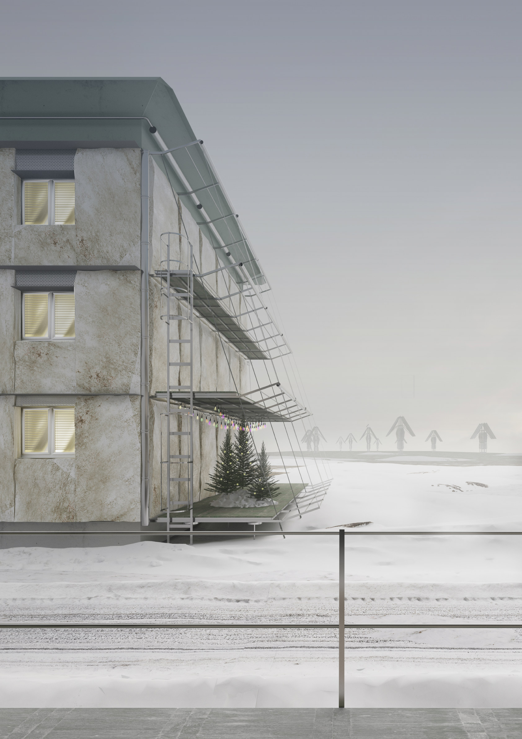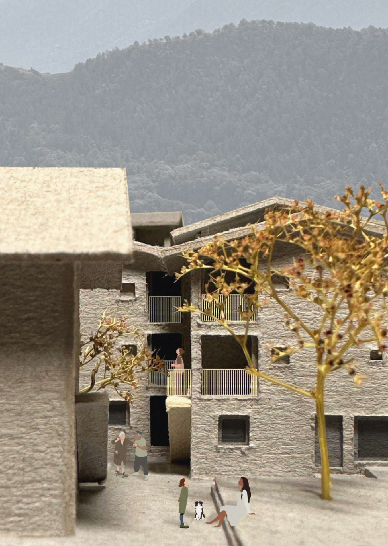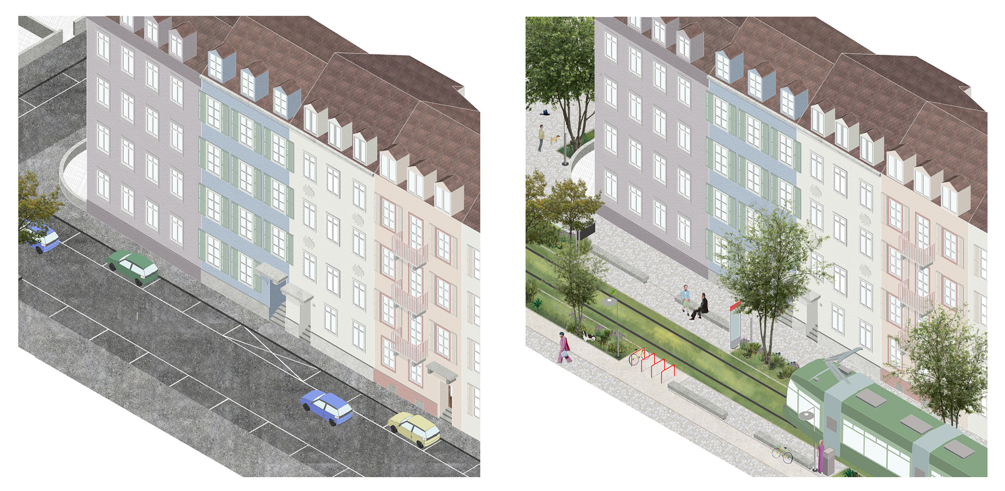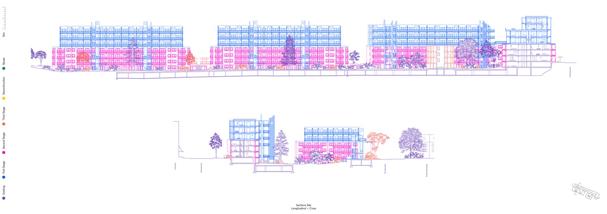 Single-family homes are among the most common domestic architectures in Germany. As a basis for this project, the theoretical statement The Boundaries of Labor which examines domestic space in the crisis of (elderly) care, identifies single-family homes as the place where the current crisis becomes most evident. They conceal the work of (mostly female) caregivers and isolate those that depend on care. Drawing on research and conversations with caregivers, the project proposes scenarios that examine potentials for transformation in a single-family home neighborhood in Borken, Germany, over the next 30 years. Differing in scale, these interventions mean to facilitate social connectivity, mutual aid, civility and adaptability for changing life circumstances of the residents. The aim is to create an architecture which considers the (affective) relations that residents form with their surroundings—by fostering social and cultural acceptance as well as an increased visibility of aging.