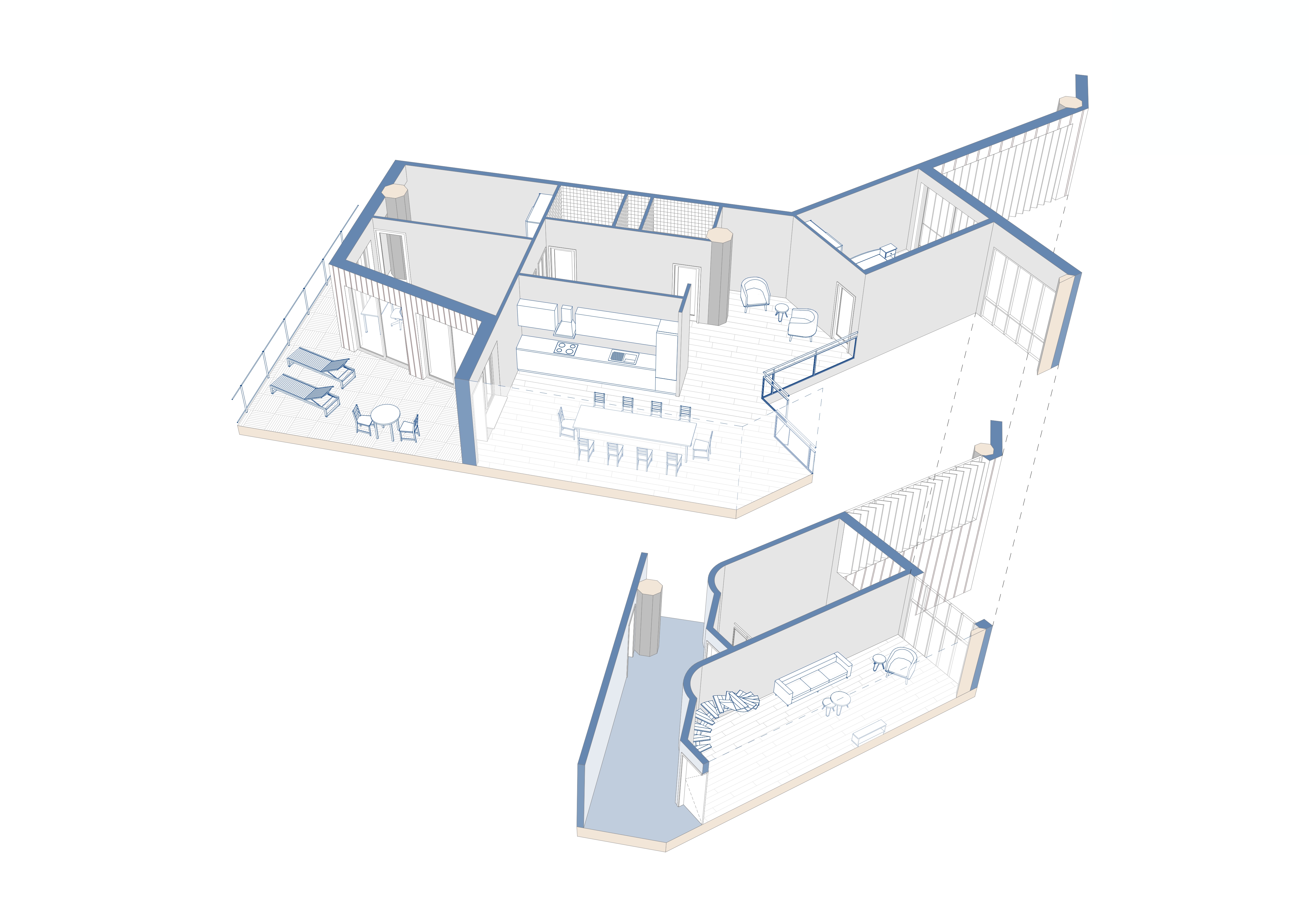 Le projet se situe dans le quartier de Bellerive à Lausanne, dans une zone où se côtoient des bâtiments de différentes époques, dont plusieurs sont classés monuments historiques. Ce contexte historique soulève la question de savoir comment transformer un tissu urbain existant sans en altérer les qualités. Le principal défi consiste donc à étudier les conditions d'une densification qui respecte l'environnement bâti et l'identité du lieu. Au lieu de proposer un remplacement, le projet s'appuie sur les bâtiments existants, qu'il transforme et agrandit. Trois mesures principales sont développées : la surélévation d'un bâtiment de Favarger et deux nouvelles constructions. Ce projet remet en question notre façon d'habiter et de développer les quartiers existants : comment densifier sans détruire la mémoire ? Comment transformer sans uniformiser ? Il propose une observation attentive du contexte et des mesures précises pour créer un tissu urbain plus cohérent, ouvert sur l'avenir mais ancré dans son histoire.