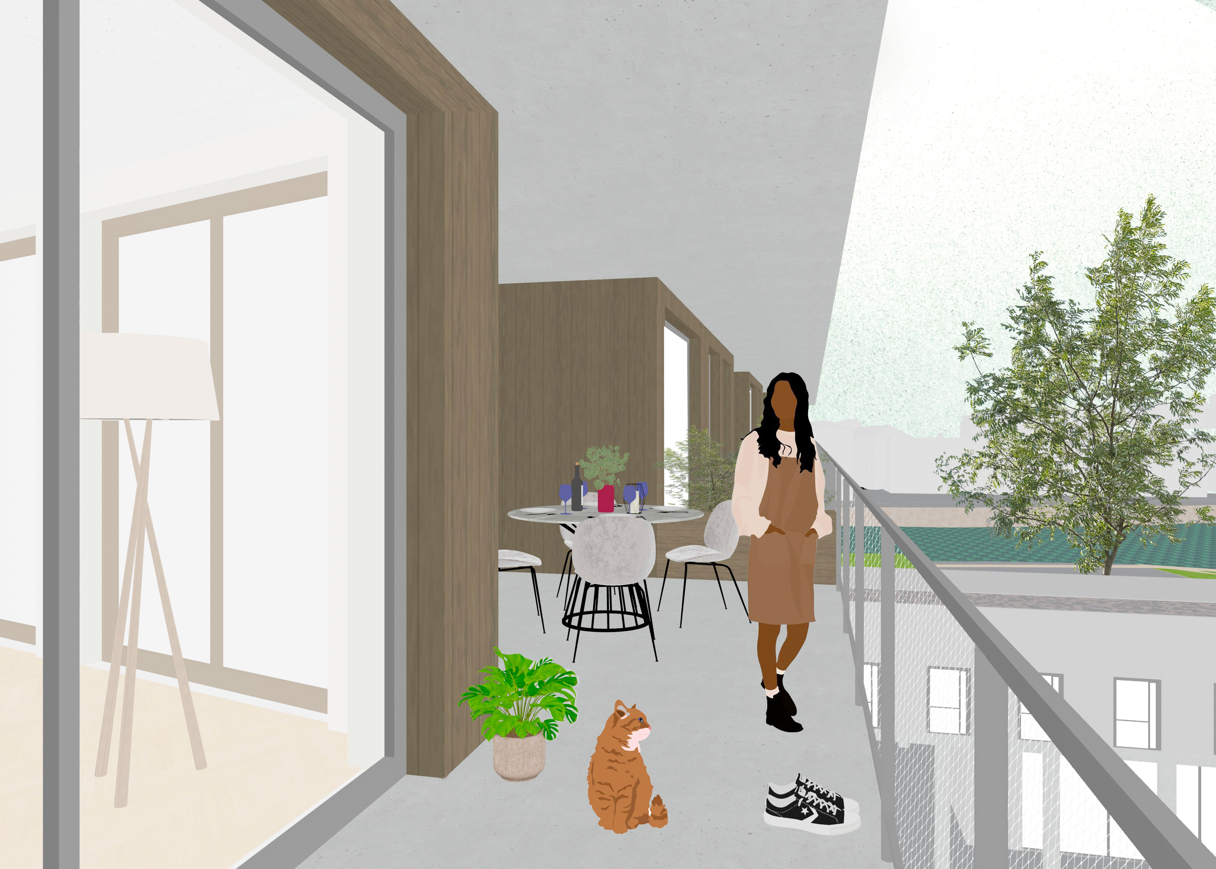 Das Projekt ermöglicht eine etappenweise Umsiedlung auf ein benachbartes Grundstück mit dem Ziel, bestehende Nachbarschaften und Bindungen zu bewahren. Daraus entsteht ein dichtes Ǫuartier mit einem kinderfreundlichen Gefüge aus öffentlichen, halböffentlichen und privaten Räumen, Gärten und ruhigen Straßen. Dem Entwurf liegt ein Wohnmodell zugrunde, das sich im Laufe der Zeit an unterschiedliche Bedürfnisse anpasst. In der Planungsphase wird eine Vielzahl typologischer Grundformen entwickelt – von Einzimmerwohnungen bis hin zu Einheiten mit vier Zimmern –, um eine möglichst grosse Bandbreite an sozialen Realitäten abzubilden. Diese Vielfalt ist Teil des Konzepts, um soziale Durchmischung zu fördern und gemeinschaftlichen Zusammenhalt zu stärken. Mit Klarheit und Umsicht begegnet das Projekt einer extremen Ausgangslage – ohne sie zu vereinfachen – und formuliert eine lokal verankerte, konkret umsetzbare und übertragbare Antwort auf eine globale Herausforderung. Es versteht Wohnen als kollektiven Prozess, in dem Autonomie, Solidarität, Erinnerung und Entwurf zu einem zukunftsfähigen Modell zusammenfinden.