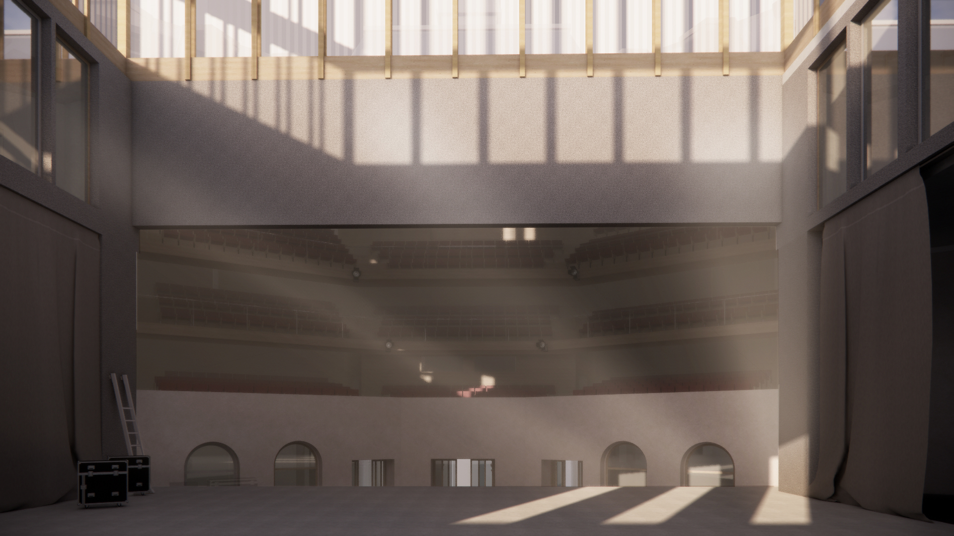 Diese Masterthesis nimmt das Scheitern des Projektes für das Neue Luzerner Theater zum Anlass darüber, um durch das Anwenden qualitativer sozialwissenschaftlicher Methoden alternative Visionen für das Theater selbst und seine Rolle in der Stadt zu entwickeln. Durch einen zeitlichen, geographischen und sozialen Zoom-Out aus der vorgegebenen Parzelle wird die These formuliert, dass das Theater als Sequenz von Räumen für die darstellenden Künste entlang das gesamten südlichen Reussufers –  vom KKL bis zur Jesuitenkirche mit ihren häufigen Konzerten – gedacht werden muss. So bietet der Entwurf durch behutsame Adaptationen der Bestandesgebäude entlang des südlichen Reussufers nicht nur architektonische konstruktive Antworten, wie mit bestehenden, unternutzten Gebäuden umgegangen werden kann, sondern formuliert auch eine städtebauliche Vision für das zukünftige, infrastrukturelle Grossprojekt am Bahnhof Luzern. Die Flusspromenade wird in einen kohärenten und belebten Stadtraum verwandelt.