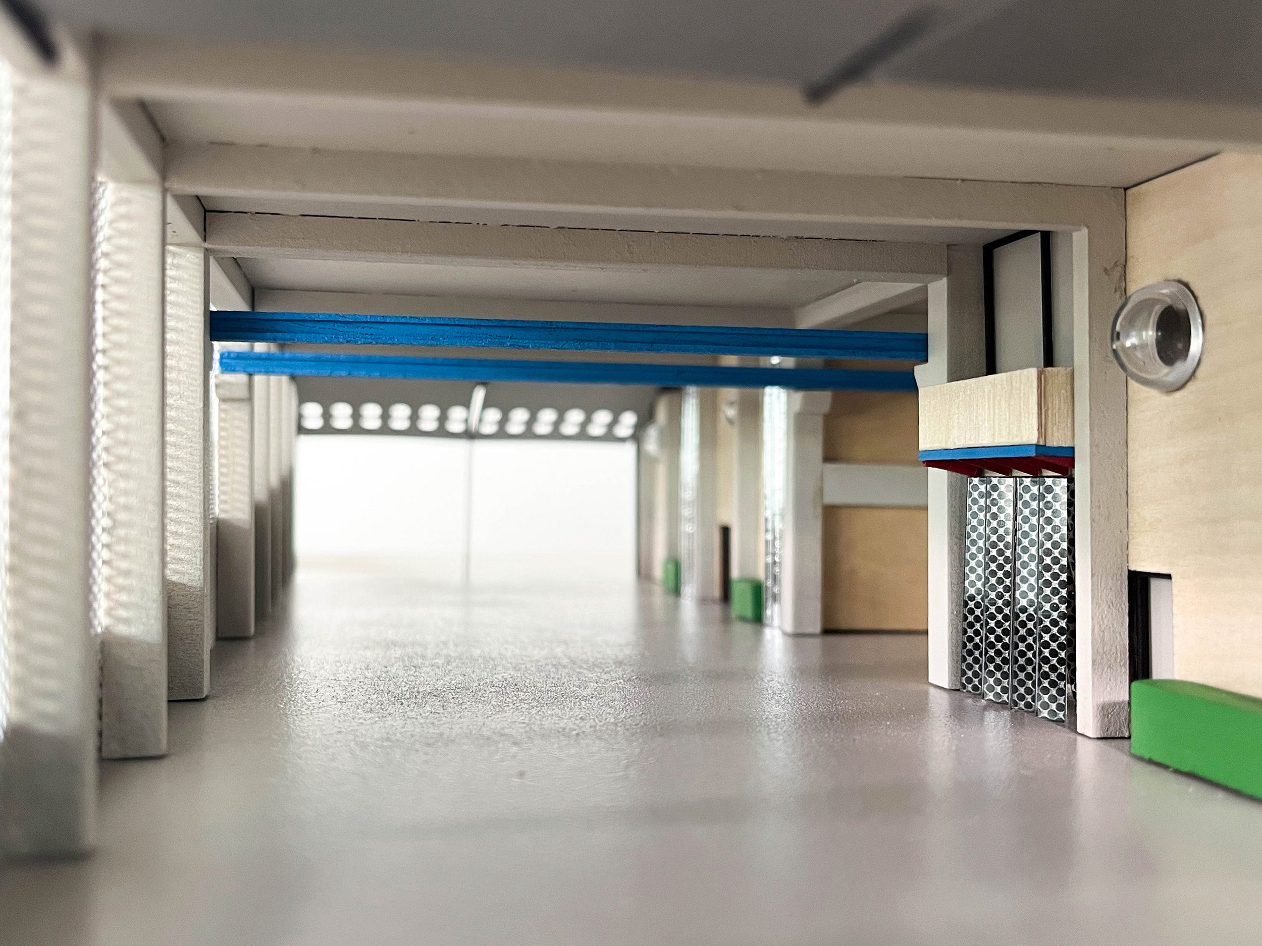 Wie sieht die Zukunft der Fabrik und ihr Image im städtischen Umfeld aus? Im Stadtteil Sévelin in Lausanne, der heute weitgehend vom Dienstleistungssektor geprägt ist, fügt sich das Projekt in die letzte Gebäudegruppe aus den 1930er Jahren ein, die an das Recyclingunternehmen Goutte erinnert. Das Programm umfasst hauptsächlich ein Zentrum für die Wiederverwendung von Bauteilen aus dem Rückbau von Gebäuden in Lausanne, was seine Lage im Stadtzentrum rechtfertigt. Hinzu kommen Wohn- und Arbeitsräume für Handwerker, die Teil einer neuen Form der urbanen, lokalen und zirkulären Industrie sind. Die architektonische Maßnahme besteht in der Installation einer Überdachung, die das bestehende Gebäude schützt. Ihre modulare Struktur erstreckt sich punktuell um die Hallen herum, was einen schrittweisen Bau ermöglicht. Dieses Gitter, das wie ein großes Regal wirkt, gewährleistet den reibungslosen Ablauf des Programms und steht gleichzeitig im Dialog mit dem umgebenden Kulturerbe. Könnten Wiederverwendung und Industrie so das Stadtzentrum wiederbeleben?