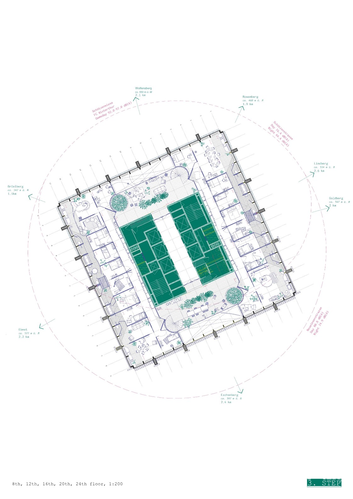 High-rise buildings symbolise modernity, represent economic prowess and technological accomplishments, but must adapt to evolving social and ecological imperatives. The Sulzer high-rise, constructed as an office tower, portrayed an emblem of industrial affluence. Today, it epitomises the challenge of reimagining such monofunctional edifices for the future. The foundation for this project lies in its façade framework: it reemerges as an architectural device—the tower does not evolve from the bottom up, rather from top to bottom, mimicking a plant whose roots gradually burrow down. A steel skeleton structure reconfigures the office interiors into residential units. The transformation is also defined by principles of the circular economy: rainwater and grey water are reutilised on-site. Could this principle serve as a prototype for confronting the limitations of monofunctional office towers? Could it give rise to a system that redefines existing urban fabrics, and inspires other cities as a didactic scaffold for the future?