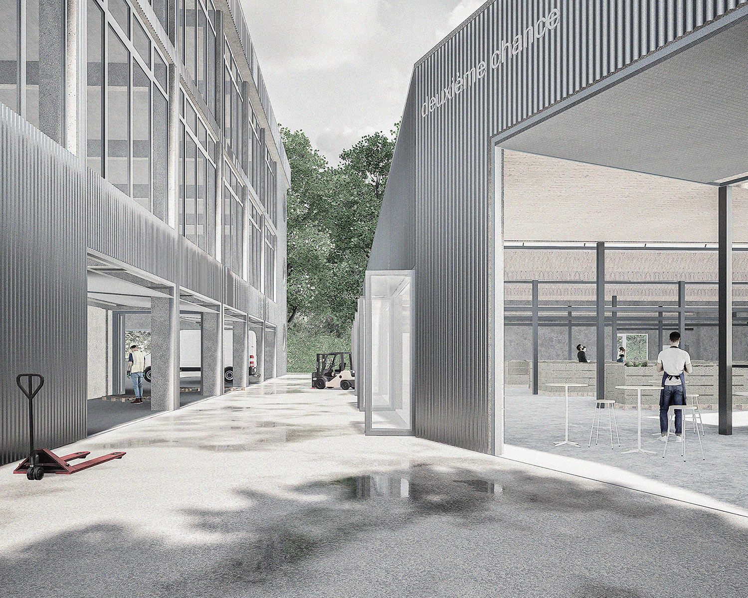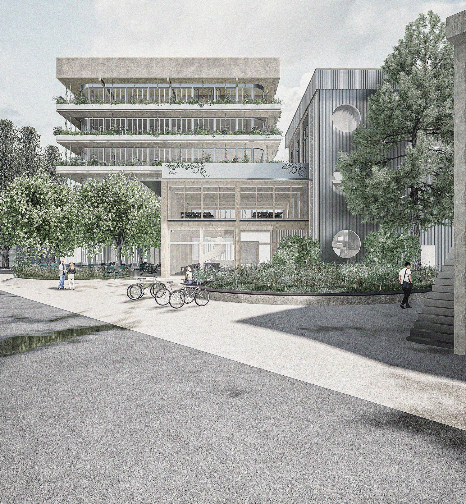 Aus ästhetischen Gründen vernichten grosse Anbaubetriebe einen Teil ihrer Ernte an Obst und Gemüse. Die Arbeit will diesen Produkten eine zweite Chance geben. Das Ensemble aus drei Neubauten mit zwei bestehenden Gebäuden bildet einen neuen Platz und eine autofreie Gasse. Zusammen mit dem öffentlichen Erdgeschoss bilden sie einen neuen Ort des sozialen Austauschs und der Gastronomie. Um das Bewusstsein für Verschwendung zu schärfen, werden die Lebensmittel nicht nur in einem Feierabendmarkt angeboten, sondern auch in einem Restaurant und einer Kochschule verarbeitet. Die neu geschaffene Gasse ist wichtig für den logistischen Ablauf: Produkte werden vom Industrieareal angeliefert und zu den Shedhallen transportiert, wo der Markt stattfindet. Die Gebäude haben weitere lebensmittelbezogene Nutzungen auf verschiedenen Ebenen. Die Dächer werden genutzt, um den Wasserhaushalt, die Aufenthaltsqualität und die Kühlung zu verbessern.