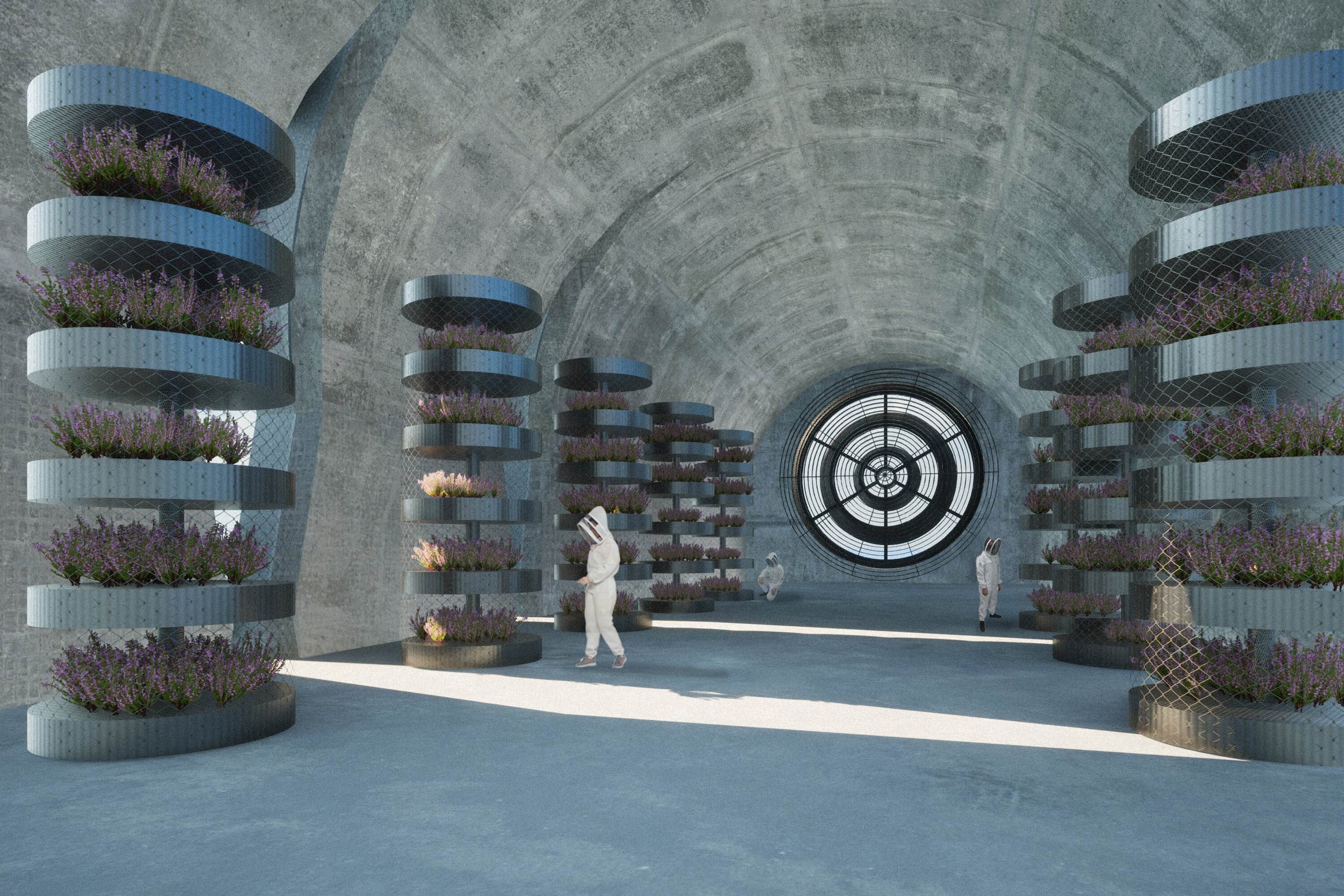 Die Intervention fügt sich in den Kontext des Parco Agricolo Sud in Mailand ein, entlang der Achse der Porta Vigentina. Das Projekt befindet sich in der Nähe des IEO, des Europäischen Instituts für Onkologie, und dient der Erforschung von Behandlungsmethoden mit Heilkräutern für Krebspatienten. Das Projekt ist in drei Makrozonen unterteilt: Die erste befindet sich im Norden, wo vertikale Gewächshäuser in fünf bestehenden Türmen errichtet werden. Die Idee besteht darin, das Skelett der Türme, die inzwischen aufgegeben wurden, wiederherzustellen und für den vertikalen Anbau zu nutzen. Ein zweiter Bereich, der sich weiter südlich befindet, ist die Gestaltung der Gewächshäusern, in denen Heilkräuter angebaut werden. Neben den Gewächshäusern befinden sich die Phyto-Reinigungsbecken, die in Richtung Süden verlaufen und zu dem Becken führen, in dem das gereinigte Wasser zur Wiederverwendung aufgefangen wird. Im dritten Bereich, befindet sich vor dem großen Becken das Hauptgebäude, in dem die Verarbeitung der Heilkräuter zu Fertigprodukten stattfindet.