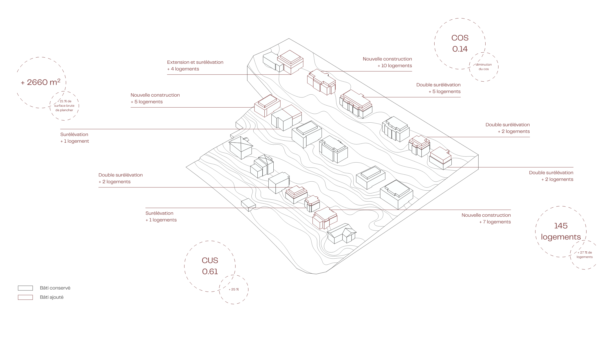 Le projet se situe dans le quartier de Bellerive à Lausanne, dans une zone où se côtoient des bâtiments de différentes époques, dont plusieurs sont classés monuments historiques. Ce contexte historique soulève la question de savoir comment transformer un tissu urbain existant sans en altérer les qualités. Le principal défi consiste donc à étudier les conditions d'une densification qui respecte l'environnement bâti et l'identité du lieu. Au lieu de proposer un remplacement, le projet s'appuie sur les bâtiments existants, qu'il transforme et agrandit. Trois mesures principales sont développées : la surélévation d'un bâtiment de Favarger et deux nouvelles constructions. Ce projet remet en question notre façon d'habiter et de développer les quartiers existants : comment densifier sans détruire la mémoire ? Comment transformer sans uniformiser ? Il propose une observation attentive du contexte et des mesures précises pour créer un tissu urbain plus cohérent, ouvert sur l'avenir mais ancré dans son histoire.