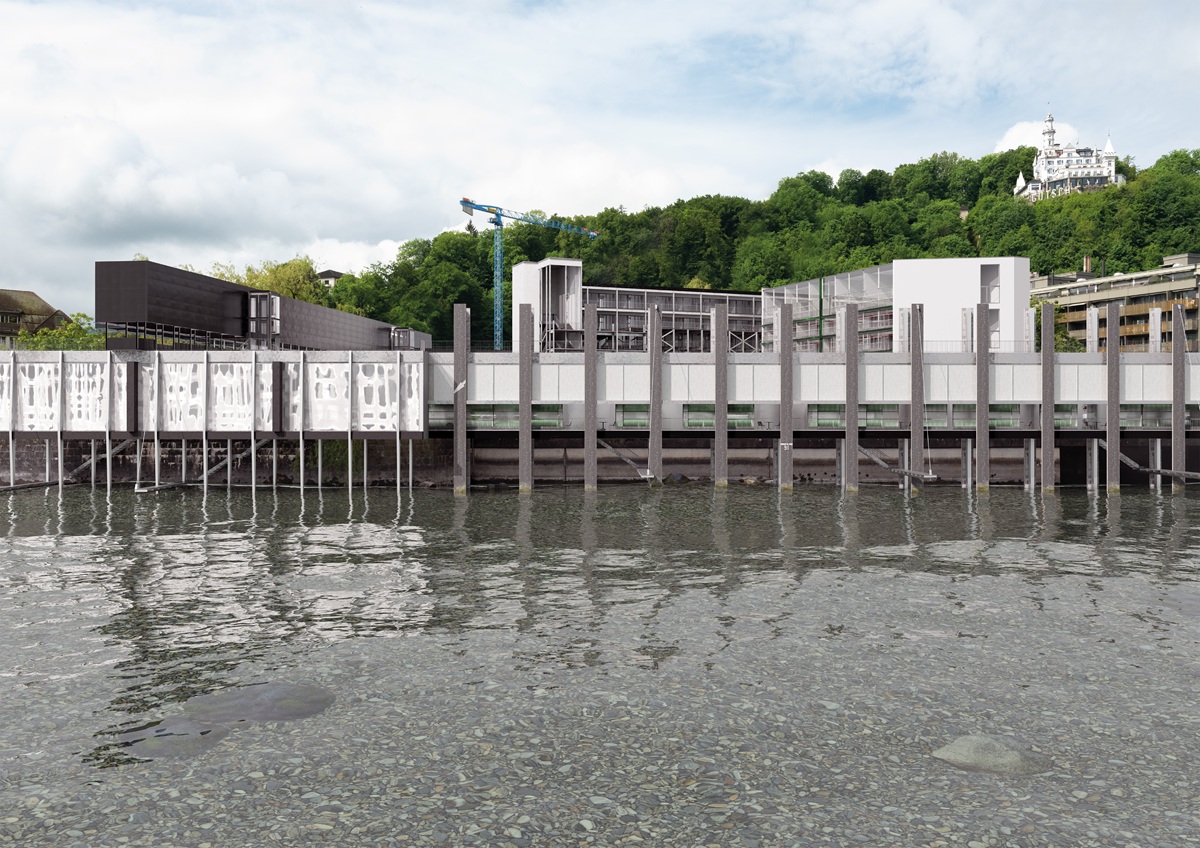 The impact of the current poly-crisis on the notion of European identity is examined and addressed architecturally in the context of the Baselstrasse neighbourhood in Luzern, which is considered the backstage of the city, a place for the outcast. Public places, infrastructure, and access to the riverfront are almost non-existent. In the first phase, the Parkhaus remains a parking garage, while only the structural elements of the uppermost floor are dismantled and used to build the river bath. In a second phase, again just the top floor elements are used to build the community building. In the last phase, like tearing up a carcass, half of the building remains standing and with the elements of the other half, an L-shaped housing volume is developed. The three buildings and the connecting bridge are not necessarily to be read as one. Nevertheless, their volumes become part of an urban composition which has characteristics of a unity.
