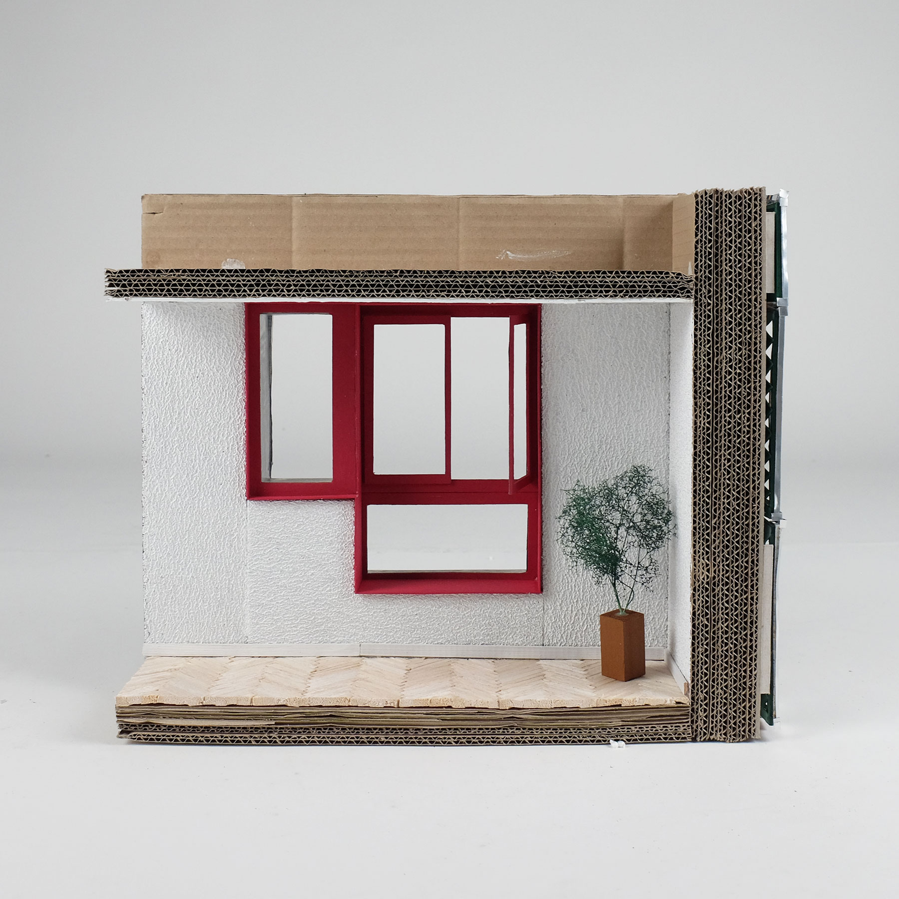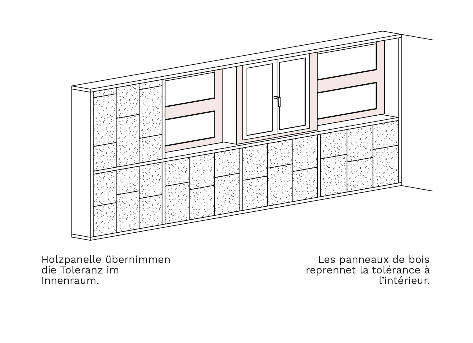 Der fiktive Projektvorschlag soll eine Hülle aus wiederverwendeten Bauteilen von geplanten Abbrüchen in einem Radius von rund zwei Kilometern erhalten. Akribisch werden in den nächsten Jahren vorgesehene Abbrüche in der näheren Umgebung aufgenommen und die daraus frei werdenden Fenster von vier Siedlungen mit allen Massen und den wichtigen bauphysikalischen Eigenschaften katalogisiert. Alleine die unglaubliche Menge von über 4000 Fenstern zeigt den Handlungsbedarf auf. Wichtig ist dabei die Erkenntnis, dass eine grosse Anzahl der Fenster aufgrund der Normierung der Erstellungszeit von den dreissiger bis (in die) sechziger Jahre gleiche Masse aufweisen und auch die im Laufe der Jahre bei Sanierungen eingesetzten Zweifachverglasungen diese standardisierten Masse übernommen haben.