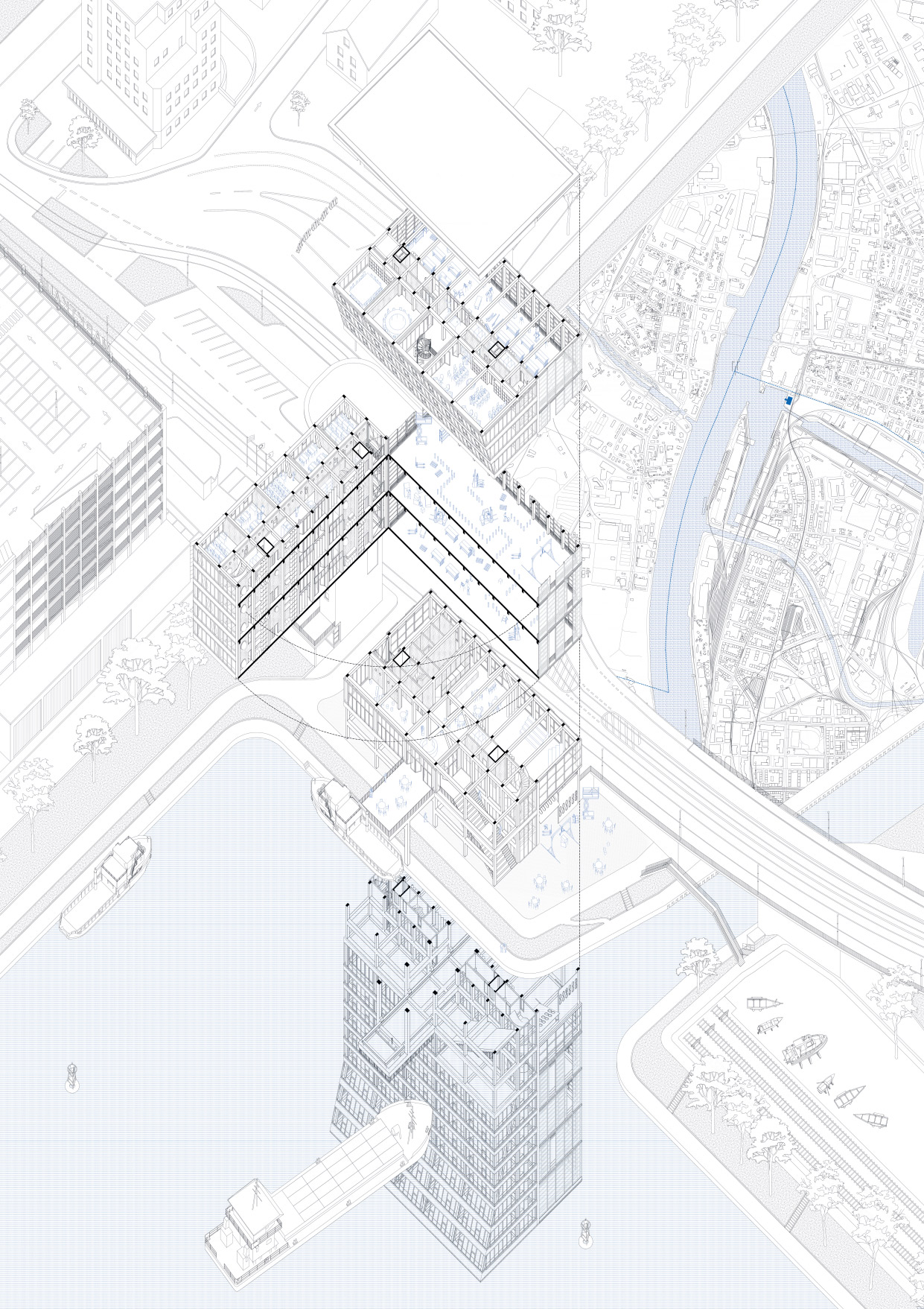 Die Arbeit zeigt auf, was Architektur leisten kann, und besticht durch klare Lösungsansätze mittels monochromer, sehr atmosphärischer Pläne, Ansichten sowie Arbeitsmodellen — eine exzellente, in sich schlüssige Arbeit.